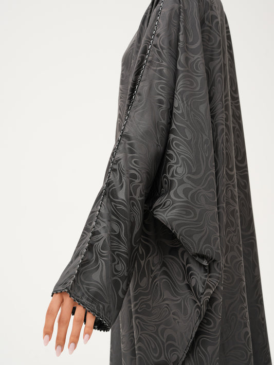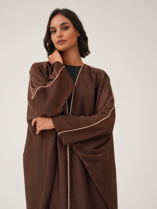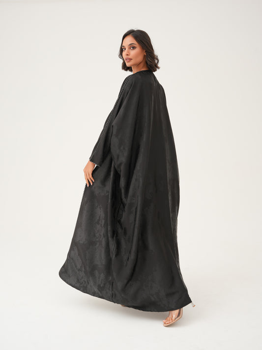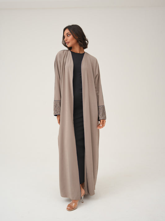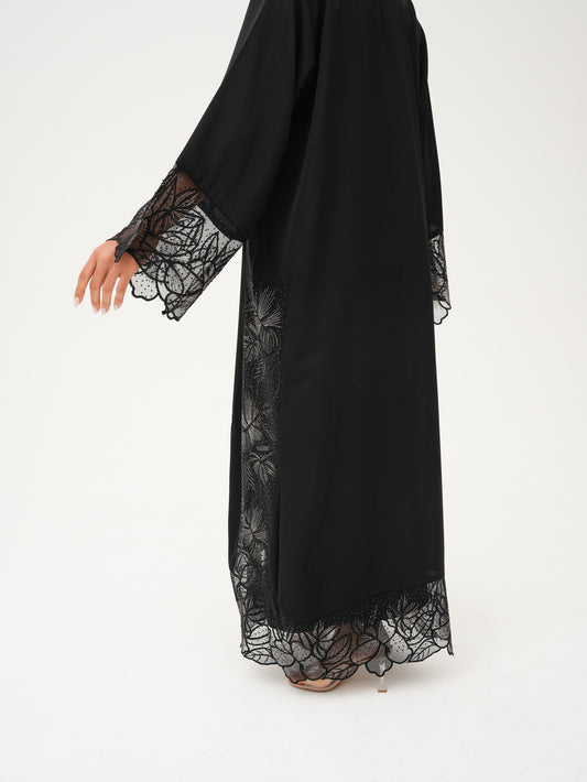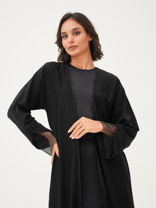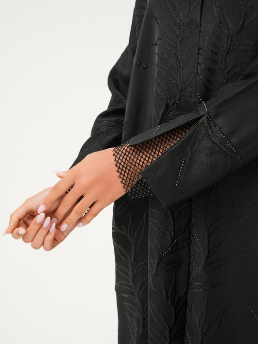 Front-lined beadworks and a unique net cuff on the sleeves abaya