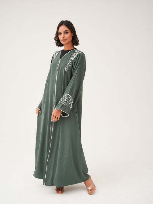 Farasha abaya with blue piping and stunning embellished beadworks on the cuffs